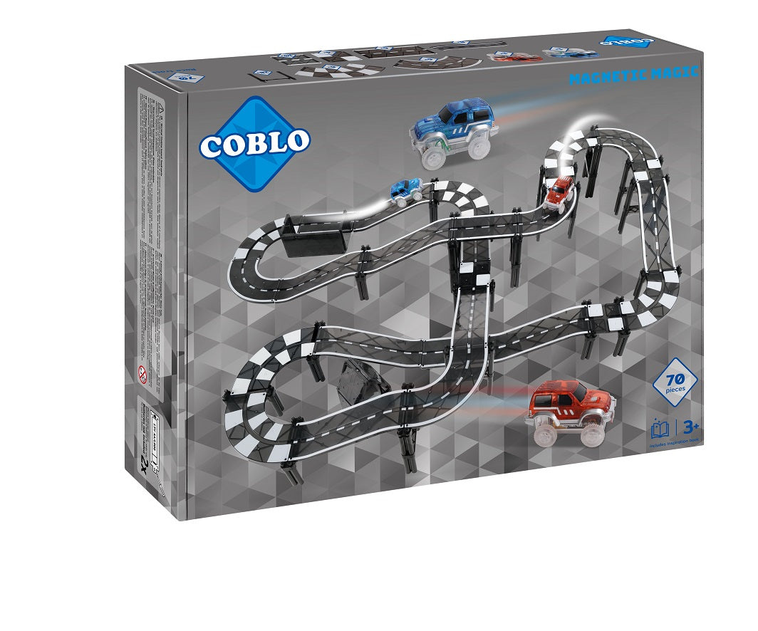 Met de Coblo Racetrack 70 Zwart wordt elke racebaan onderdeel van een mysterieuze wereld. Laat je fantasie de vrije loop en creëer de meest fantastische racebanen die je je maar kunt voorstellen. Van spookachtige kastelen en donkere tunnels tot steile bergpassen en piratenraces: de mogelijkheden zijn eindeloos.