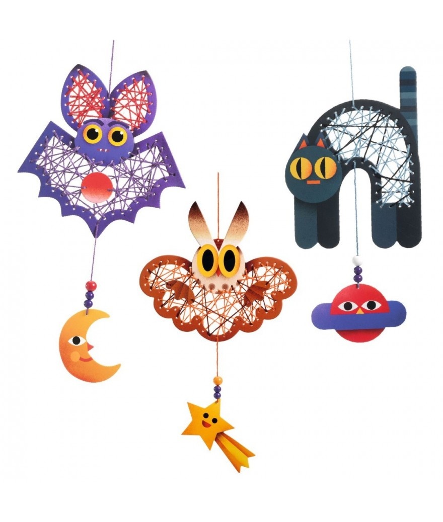 De creaties worden afgemaakt door de hangertjes met houten kralen toe te voegen.