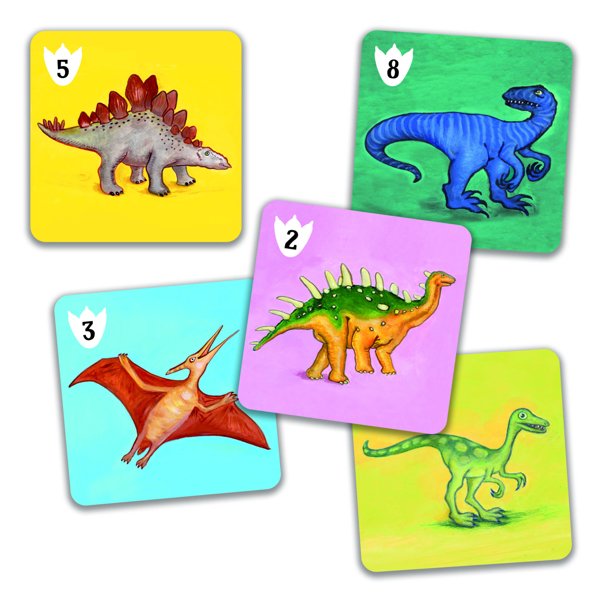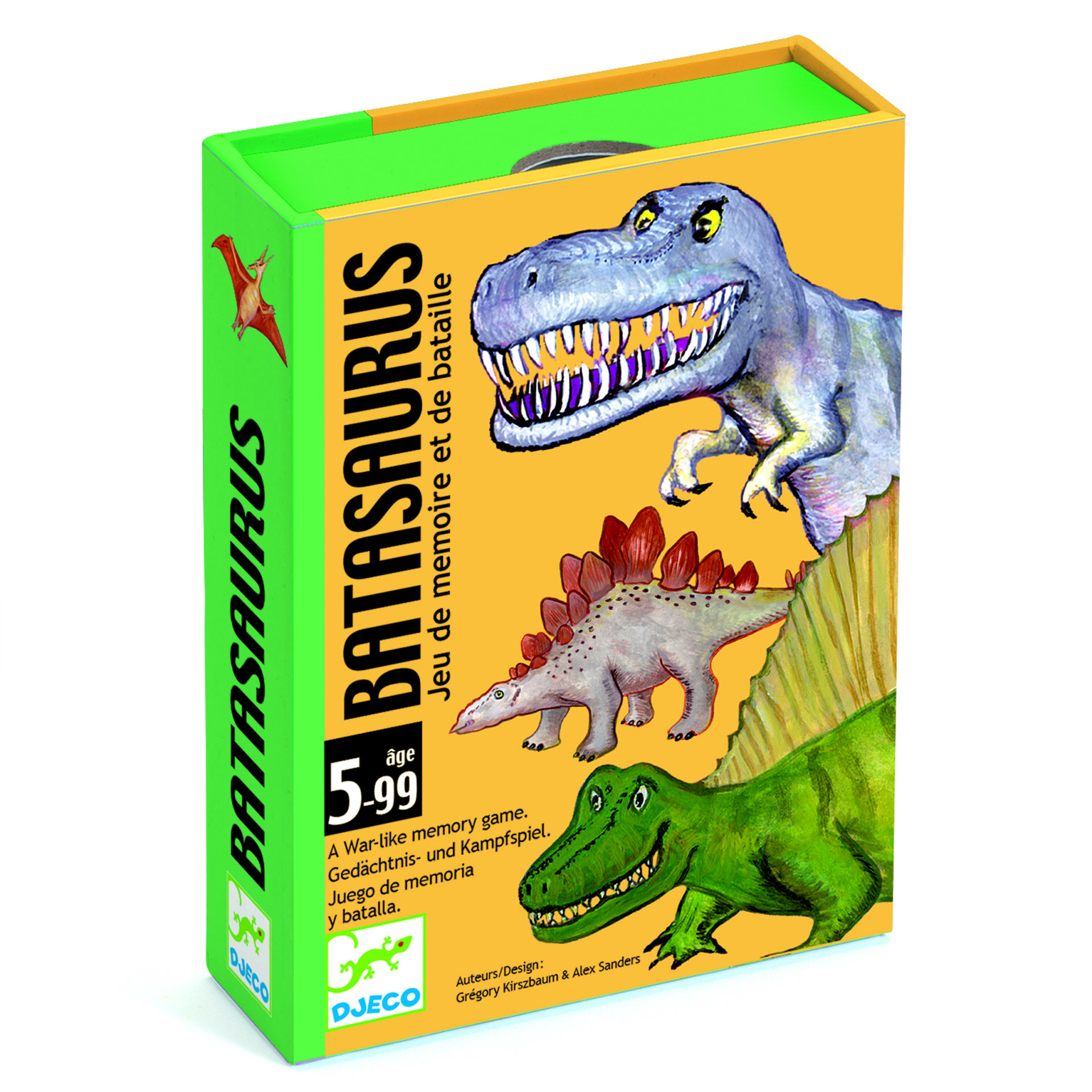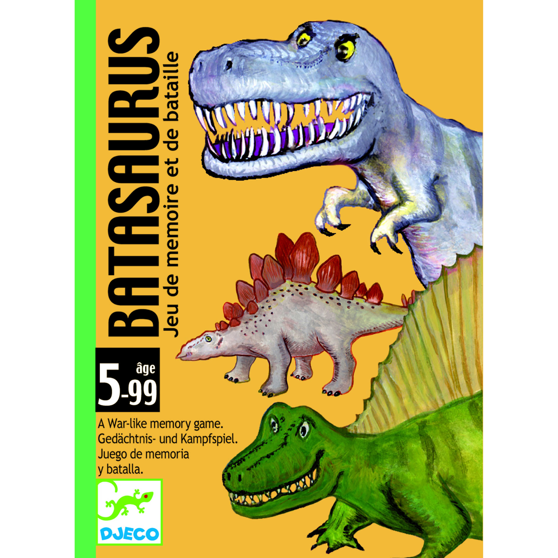 Een memory-spel in gevechtsstijl. In plaats van kaarten in hun hand te houden, moeten spelers ze gedekt op tafel leggen. Ze hebben een paar seconden om te onthouden waar ze zijn, en dan begint de dinosaurusstrijd! Bij de telling van 3 draait elke speler een kaart om - de sterkste kaart wint de ronde. Spelers kunnen kiezen welke kaart ze gebruiken, maar ze moeten onthouden waar elke dinosaurus is! De speler met de meeste kaarten wint het spel! 12 dinosauruskaarten om te onthouden, met genummerde sterktes van 1 tot 12. Een geheel nieuw gevechtsspel waarbij geheugenvaardigheden een must zijn. Illustraties om meer te weten te komen over verschillende dinosaurussoorten. Compacte, gemakkelijk draagbare doos. Duurzame kaarten van hoge kwaliteit.