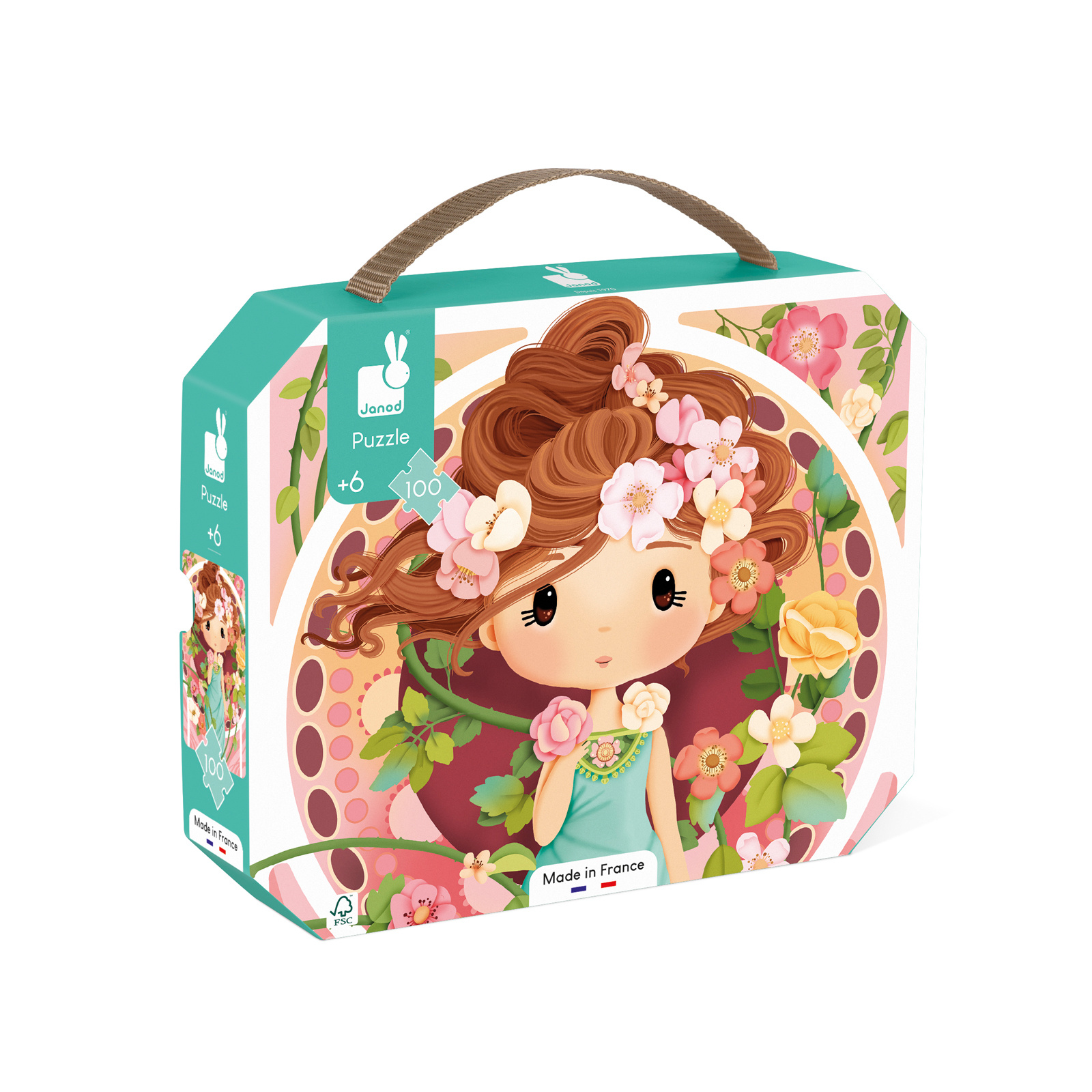 Maak kennis met de wereld van de grote schilders met deze puzzel geïnspireerd op het universum van Alphons Mucha. De afbeelding neemt de manier van werken van de schilder over door vertrouwde vormen en kleuren van de artiest te gebruiken. Wanneer deze puzzel van 100 stukken is gemaakt, is het schilderij afgewerkt en klaar om ingelijst te worden zoals in een echt museum. Een poster is meegeleverd om de allerkleinsten te helpen. Het product wordt verkocht in een leuke kartonnen koffer met stoffen handvat om die eenvoudig overal mee naartoe te nemen. Het drukwerk is op basis van plantaardige inkt, het karton is afkomstig van duurzaam beheerde bossen en gemaakt in Frankrijk. Puzzel voor kinderen vanaf 6 jaar.