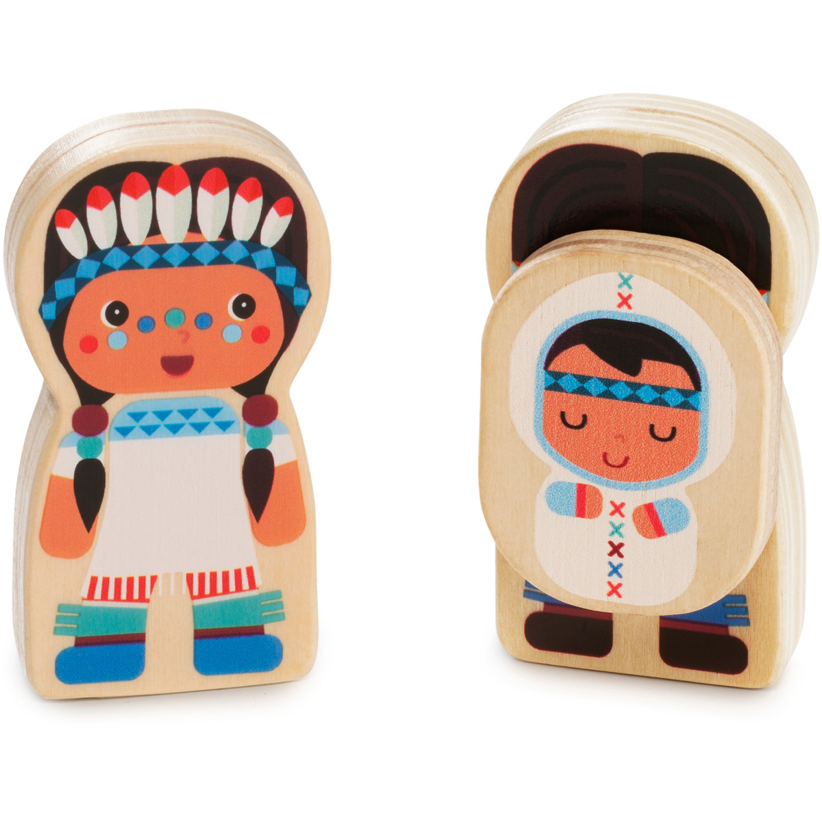 Beleef echte indianenverhalen met dit prachtig geïllustreerde Indianenvolk van houten blokken en een wigwam van stof. Imitatiespel bevordert de verbeelding en de creativiteit.