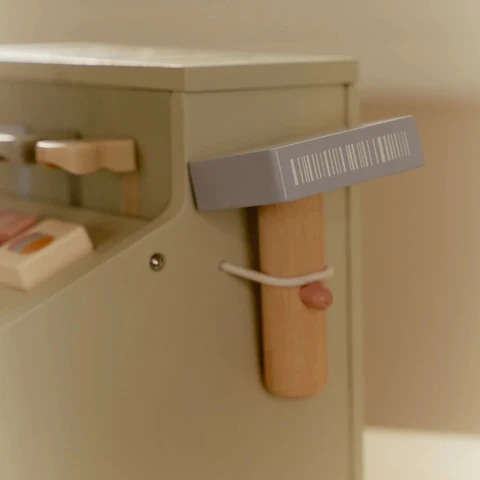 Rekenen, scannen en afrekenen maar! Met deze houten kassa voelt winkeltje spelen nóg echter. De kassa is uitgerust met een scanner, een pinpaslezer, knoppen en een kassalade voor munten en biljetten. Ook zit er een pinpas bij, zodat klanten zowel contant als met de kaart kunnen betalen. Een fantastische manier om spelenderwijs met geld en cijfers bezig te zijn. Wat mag het zijn vandaag?