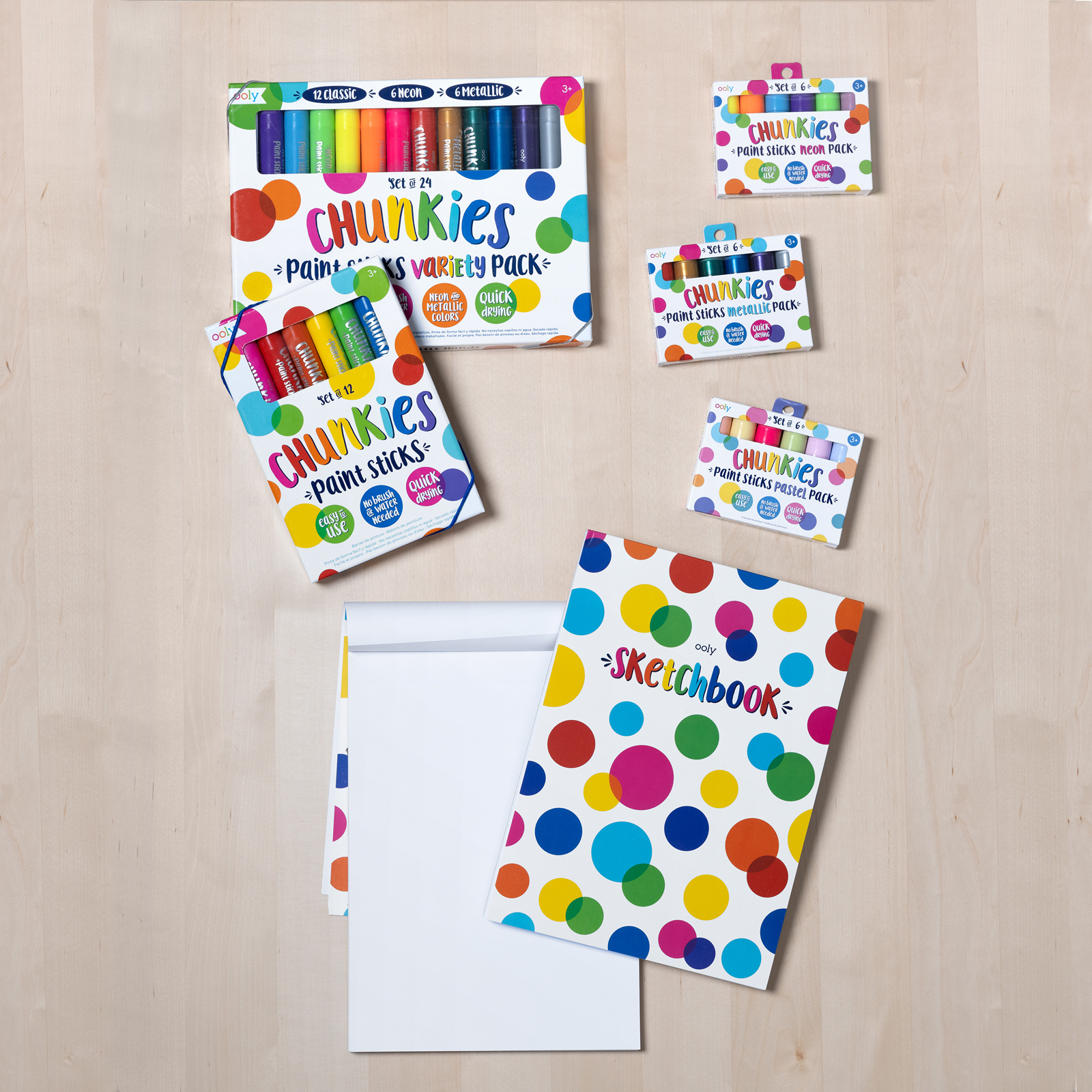 Set van 12 verfstiften om te tekenen, schilderen. Geen kwast of water nodig. Zacht, snel droog en morst niet. Ideaal voor kleine handjes. Twist up stick. Video beschikbaar: http://uk.ooly.com/videos/
