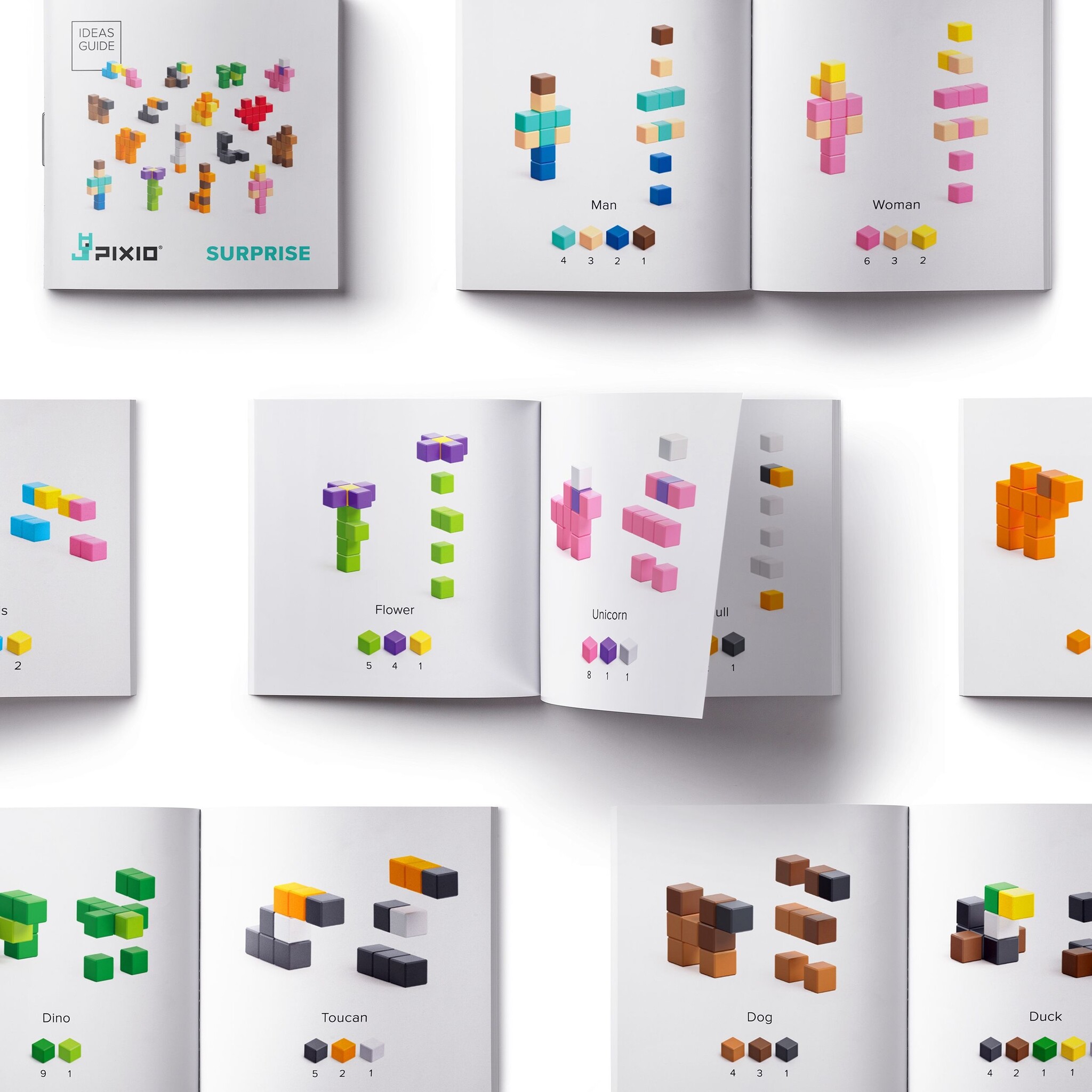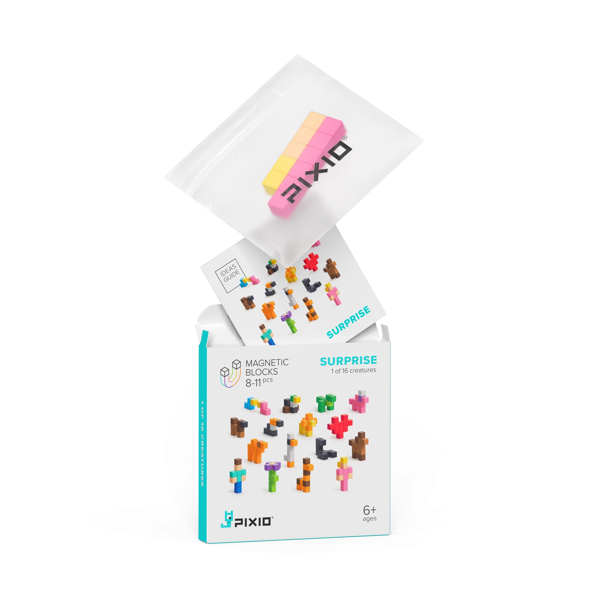 Pixio zijn kleine vierkante blokjes van kunststof met daarin 6 unieke magneetjes aan iedere zijde. De magneten zorgen ervoor dat de blokjes aan elke zijde hechten. Ze klikken op magische wijze aan elkaar vast.
