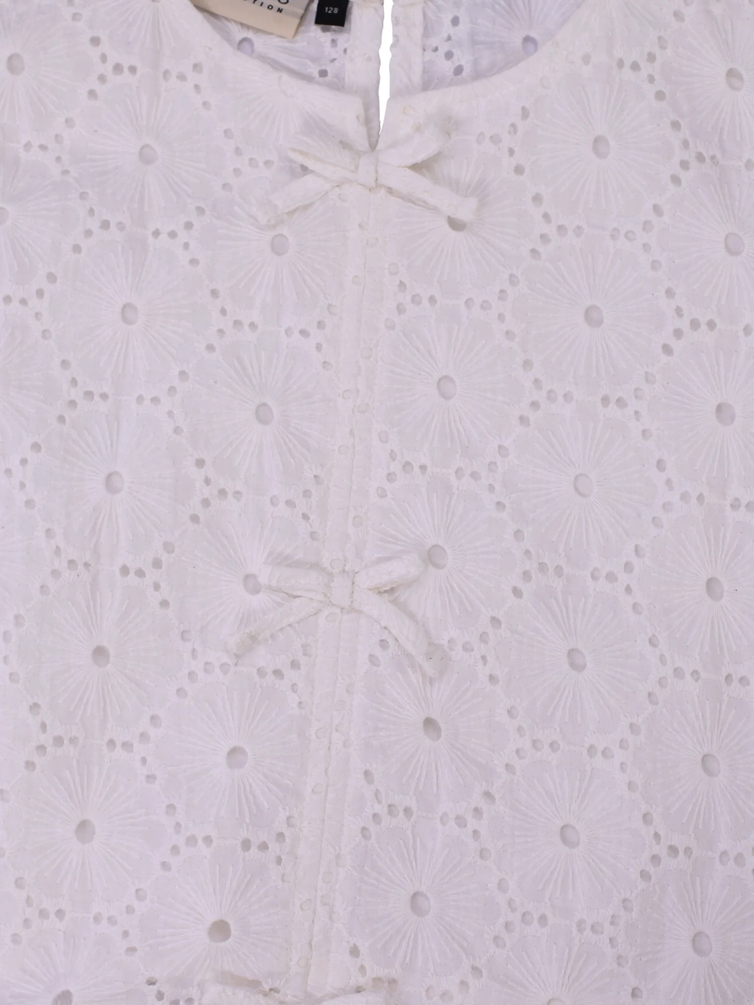 Katoenen broderie anglaise in zomers uni wit.