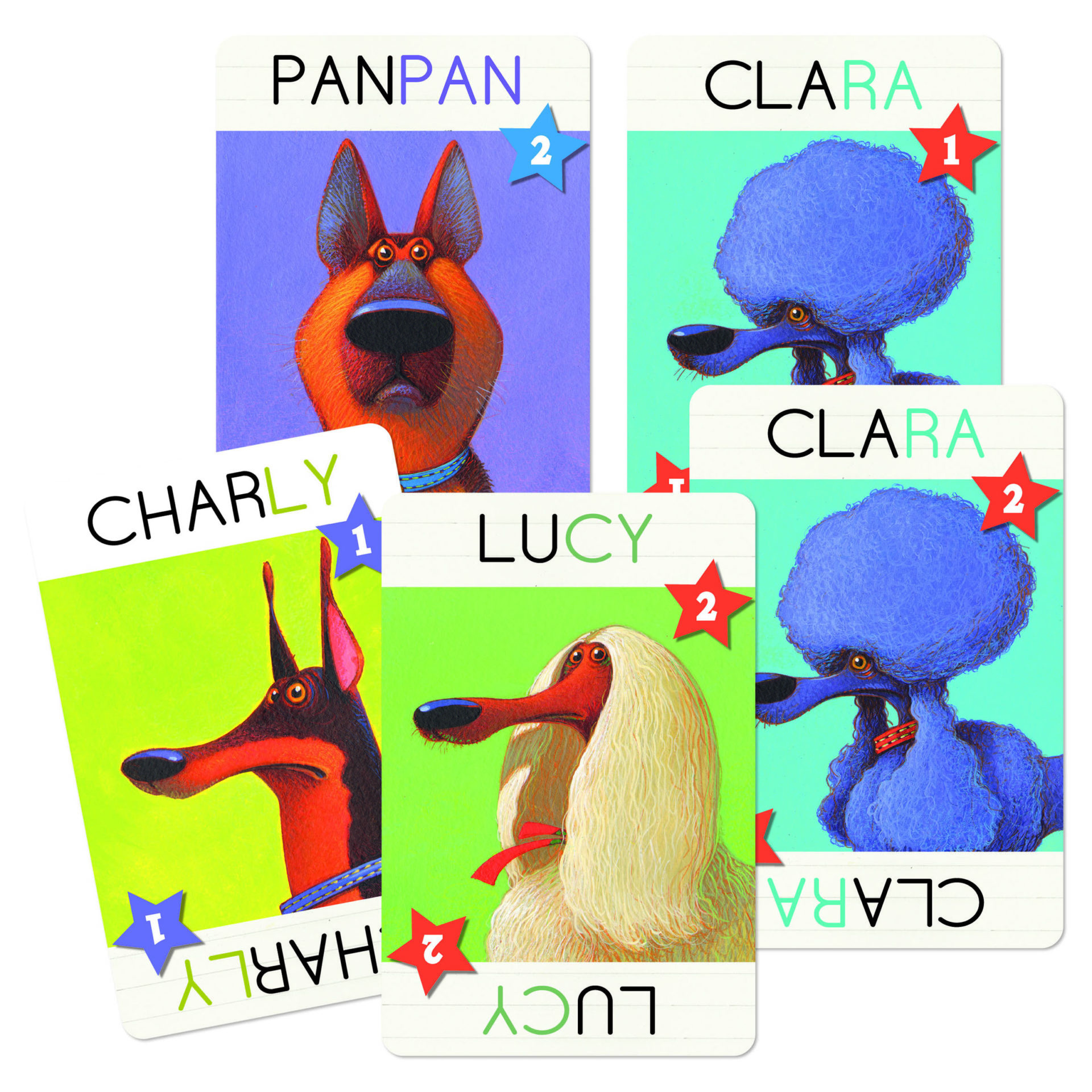 Charly, Luly, Charlu ... met de naam van de hond win je de ronde? Welke lettergrepen gebruik je? En in welke volgorde? Je moet oppassen dat je je staart niet in een draai krijgt om deze namenstrijd te winnen!Een spel van observatie, snelheid en lettergrepen!Compacte, gemakkelijk draagbare doos. Duurzame kaarten van hoge kwaliteit.