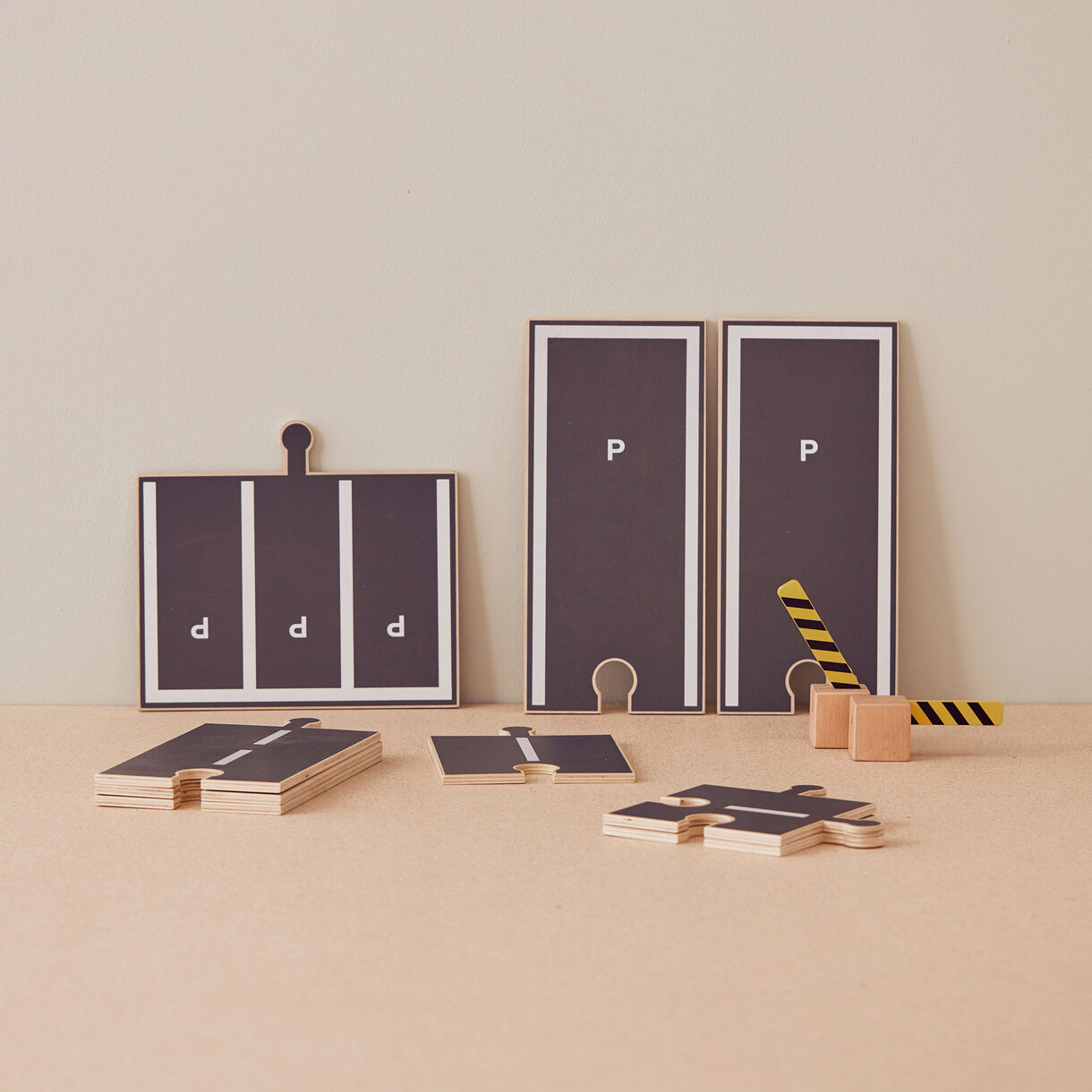 Bevat elf houten onderdelen, waaronder drie parkeerplaatsen, een wegversperring, zes wegvakken en twee extra lange parkeerplaatsen voor de vrachtwagen, brandweerwagen en bus. Breid Aiden City uit en maak plaats voor alle voertuigen in de Aiden-serie. Past op al onze auto's en bussen.